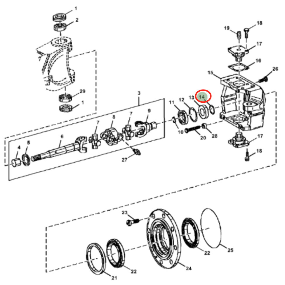 Seguro retenedor para eje delantero para retroexcavadora John Deere JD 310E y 310G.
