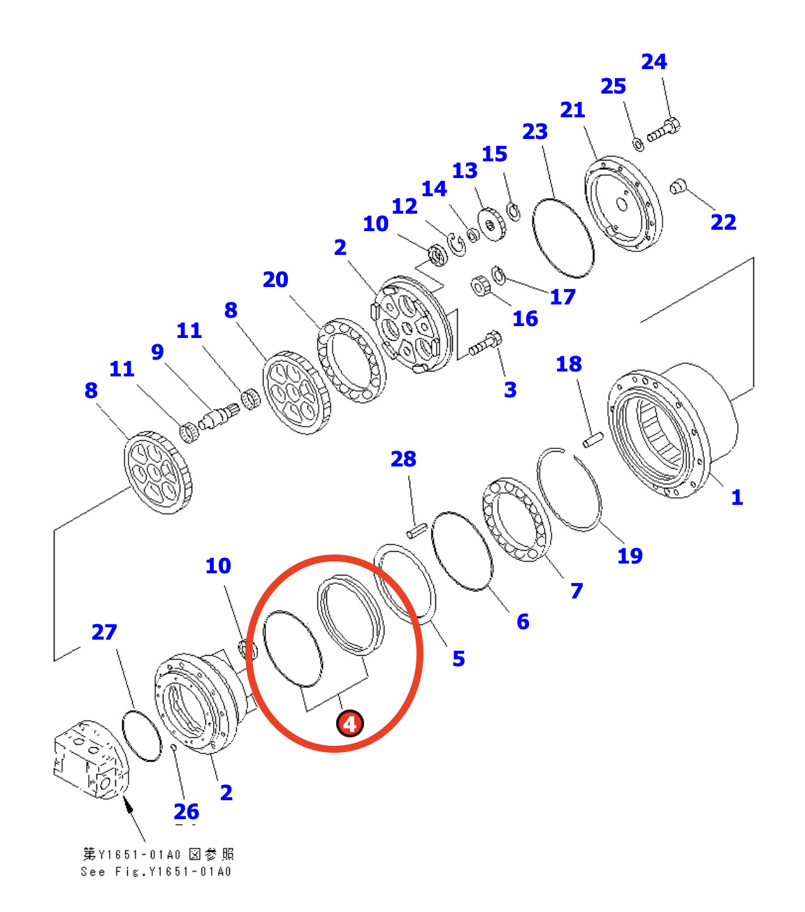 Sello espejo para equipos Komatsu en las siguientes aplicaciones: BM020C, BR200S, BR200T, BR210JG, BZ200, CS210, PC100-5, PC100-6, PC120-5, PC120-6, PC128US, PC128UU, PC130-6, PC60-6